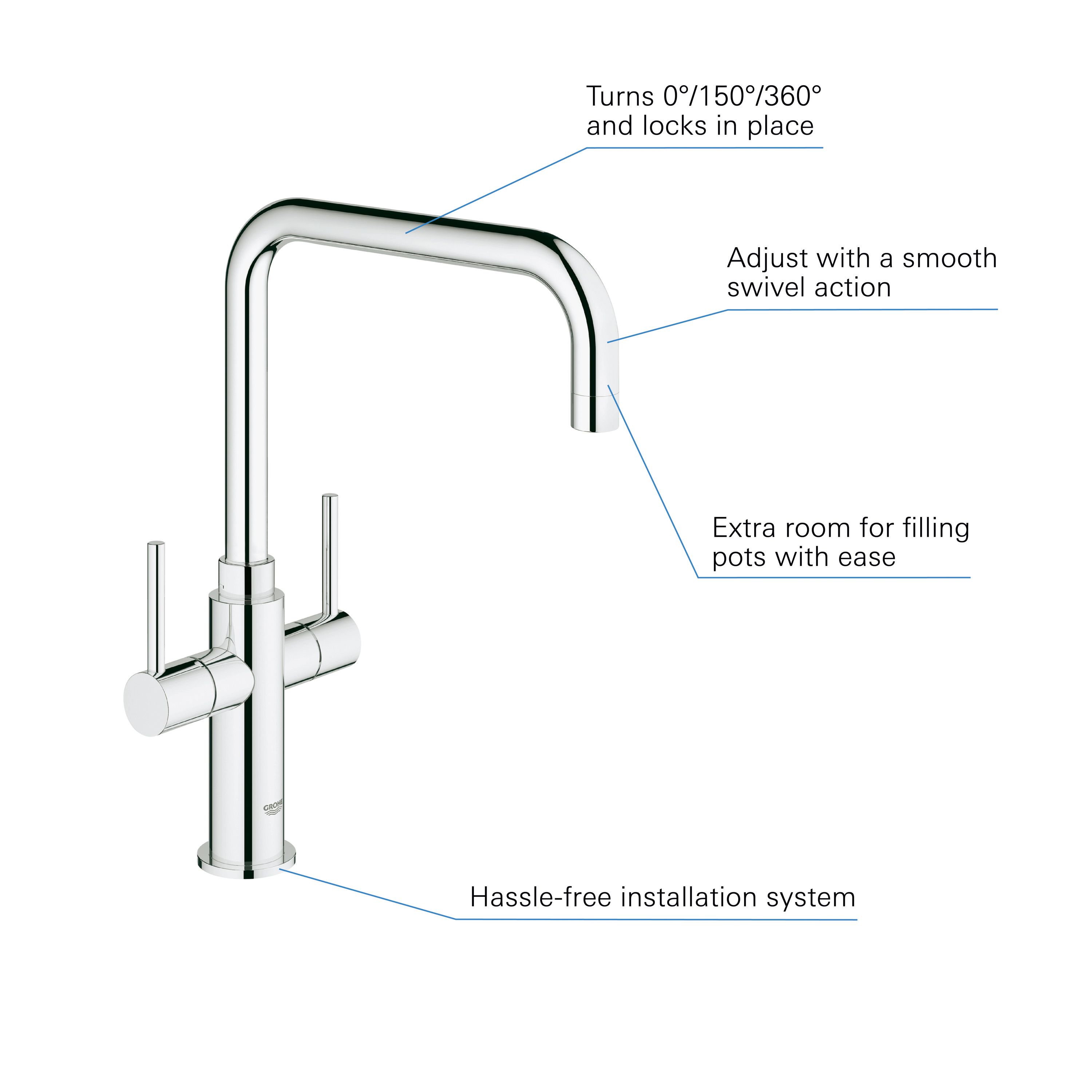 Its high spout can be locked in position or set to swivel in a 150° or 360° radius and allows you to fill tall pots with ease. Designed with a distinctive high spout, the grohe ambi mixer tap is elegant and stylish. Grohe ambi kitchen tap in chrome. Bristan mz snk ef c monza easyfit kitchen sink mixer tap with swivel spout grohe provide a 5 year guarantee. Top picks related reviews newsletter. £128.02 £78.21 inc vat add to cart. 5 out of 5 stars. Sleek mono mixer, ideal for any modern kitchen and is designed to withstand the rigorous demands of busy family life. The tap features easy dock, silk move and starlight features. Specifications instruction manual this grohe ambi dual level kitchen mixer tap features a sleek, timeless looks and will have a big compliment any modern kitchen. As a verified trade member you will have access to the full range of this kitchen tap from the ambi collection is sure to provide a touch of class to your home, with a stunning chrome finish that has been designed to keep. Splashback has also minimised thanks to its unique plumbing. 1/2 inch two handle sink mixer tap.
